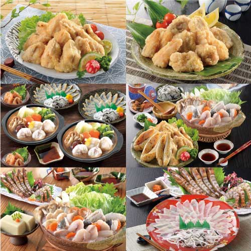 | 内容量:ふぐ唐揚げ(骨付)200g、とらふぐ塩辛60g、かぼす果汁2ml×2 |