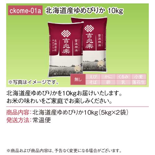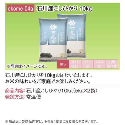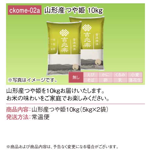 | 内容量 | 下記よりお好きな商品を おひとつお選びいただけます。 ・北海道産ゆめぴりか10kg(5kg×2袋) ・山形産つや姫10kg(5kg×2袋) ・石川産こしひかり10kg(5kg×2袋) ・秋田産あきたこまち10kg(5kg×2袋) ※予告なく内容が変更になる場合がございます。 |