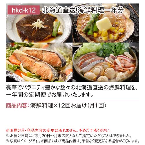 | 内容量 | 海鮮料理×12回お届け(月1回) |
