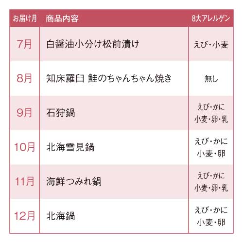 豪華でバラエティ豊かな数々の北海道直送の海鮮料理を、一年間の定期便でお届けいたします。