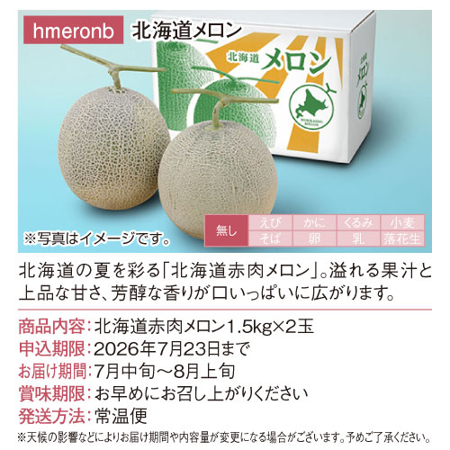 | 内容量 | 北海道赤肉メロン1.5kg×2玉 |