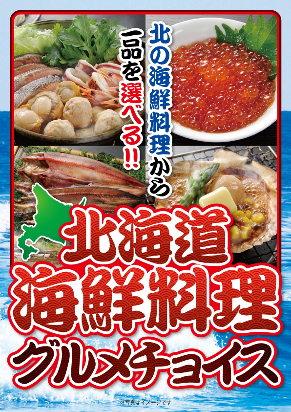 北海道の海鮮料理の中から、お好きな商品をおひとつお選びいただけます。