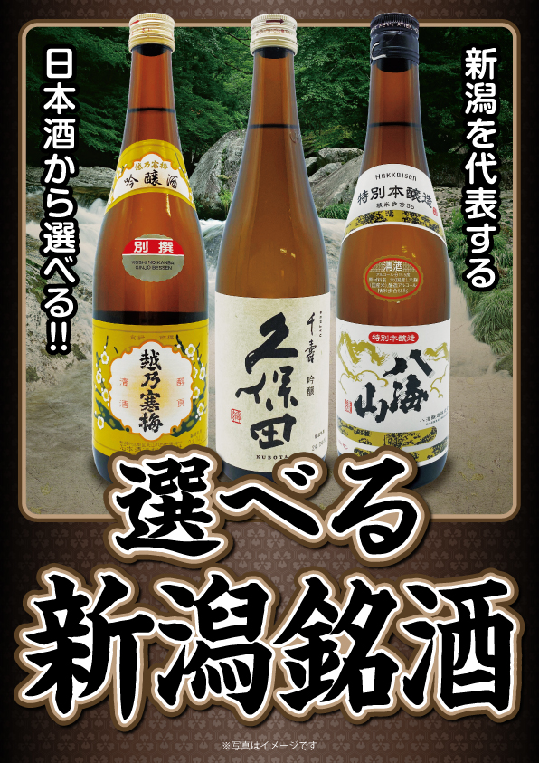 選りすぐりの新潟銘酒から、お好きな商品をおひとつお選びいただけます。本場新潟の銘酒をお楽しみください。