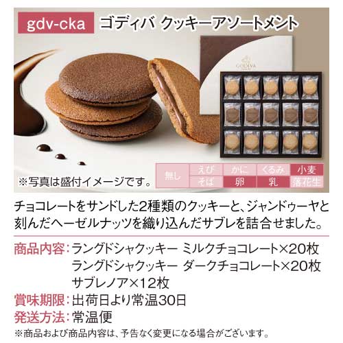 世界中で愛されるプレミアムチョコレートブランド『ゴディバ』のクッキーアソートメントです。チョコレートを楽しむクッキーとサブレの味わいをお楽しみください。